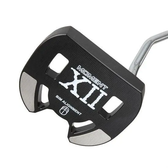 The Maltby Moment XII putter head features the effective BIM (Ball in Motion) alignment aid as the other Moment putters but the Moment XII BIM has been extended forward to cover the top line of the putter. By extending the BIM forward the BIM alignment ai